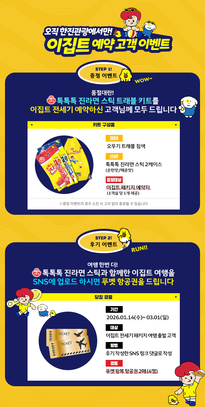 📌톡톡톡 진라면 스틱 트래블 키트 증정 이벤트는 한진관광 이집트 전세기 패키지 여행 상품 출발 고객 한정입니다.